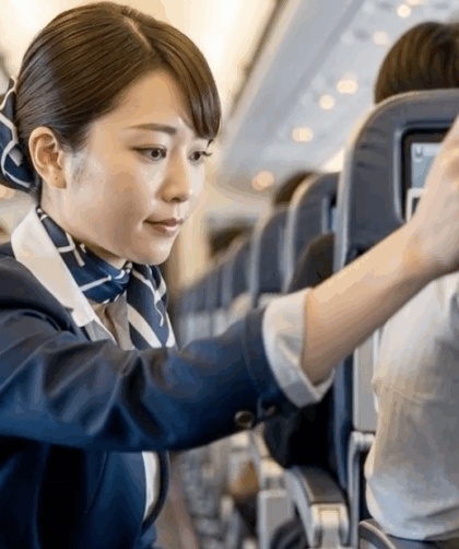 CAさん機内で笛を吹く